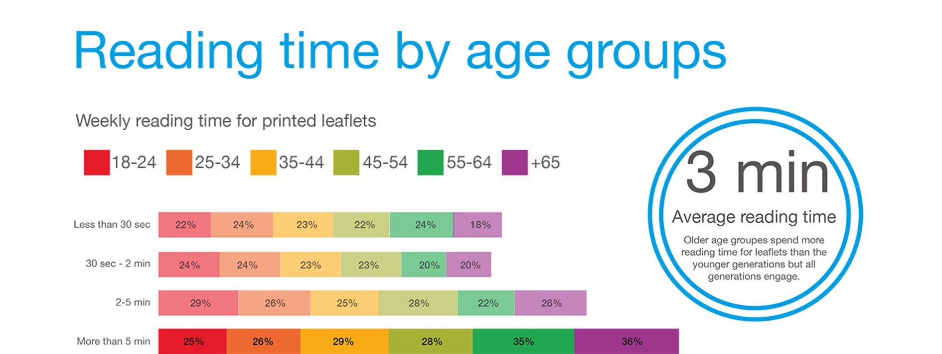Till skillnad från det snabba scrollandet online ägnar konsumenter verklig tid åt trycksaker. Mer än hälften läser i över två minuter – och de äldre målgrupperna lägger ännu mer tid. Direktreklam blir alltså både uppmärksammad och läst. - Driver action